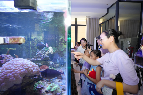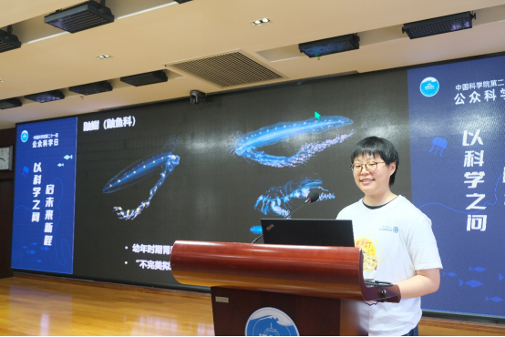 “自然之光”主題活動通過科普講座、開放海洋生物繁育基地和海洋生物標本展等,向公眾展示深海生物的發光奇跡。由林僅帶來的《誰在海底發光?》科普講座,向大家介紹了蝦、魷魚、深海魚類、發光細菌等具備發光能力的海洋生物,講述了深海熱液區的高溫煙囪體在噴出熱液的過程中會輻射出光,并與大家分享了深海生物發光和光能利用機制。